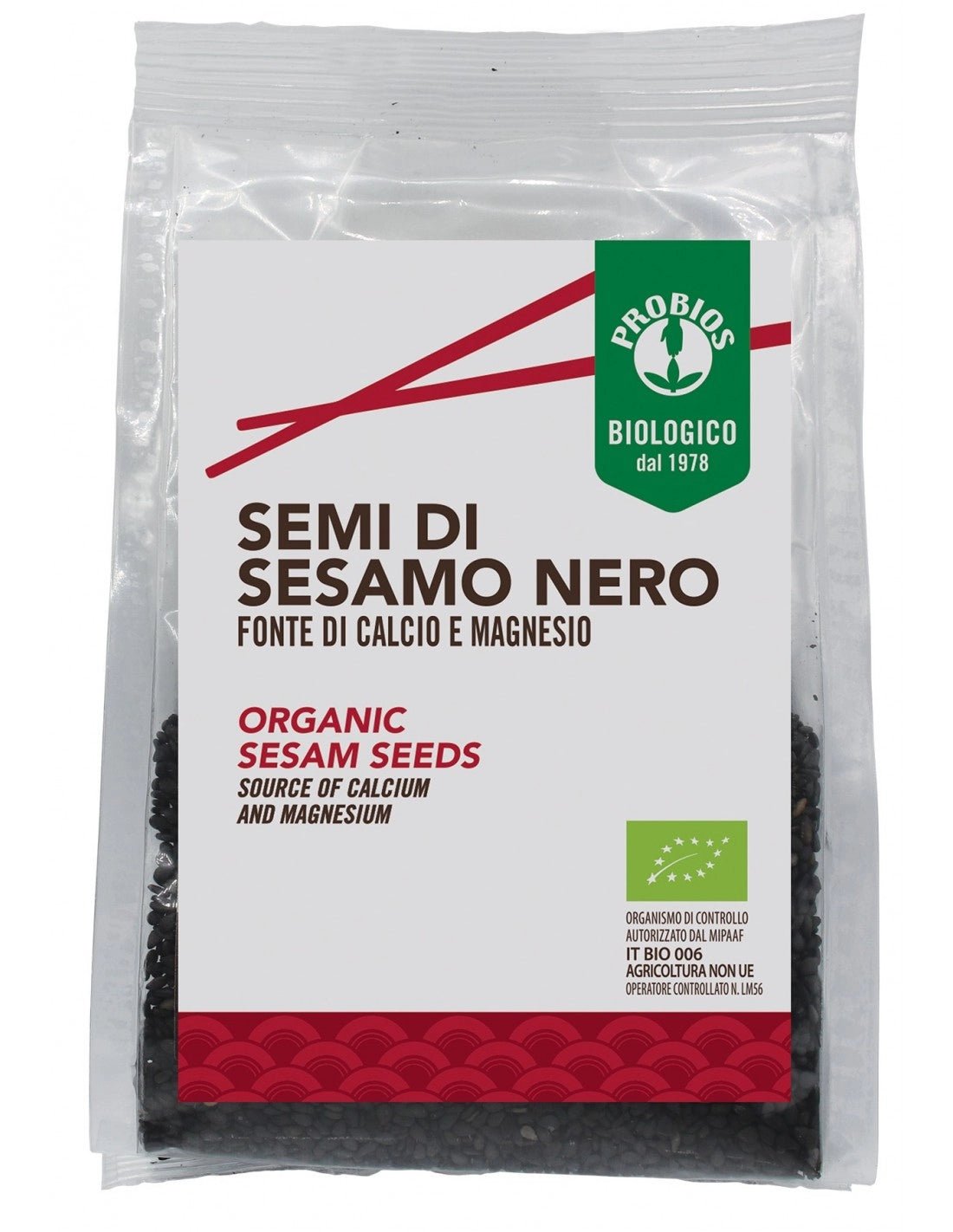 Organic black sesame seeds (Sesamum indicum), cold-processed, gluten-free raw seeds from India. They have a delicate nutty flavor and are great for sprinkling on salads, sushi, baked goods, or cooking. Symbolic of immortality, they enrich dishes with fiber and plant protein