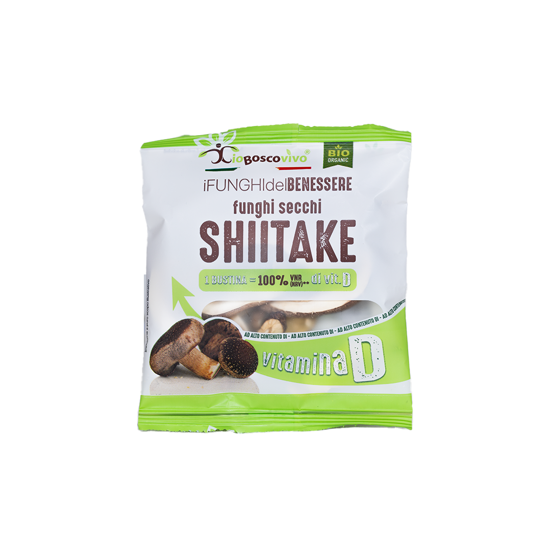IOBOSCOVIVO Organic Dry Sliced Shiitake Classic 8g: oak-grown European mushrooms, naturally sun-dried for 300× vitamin D.