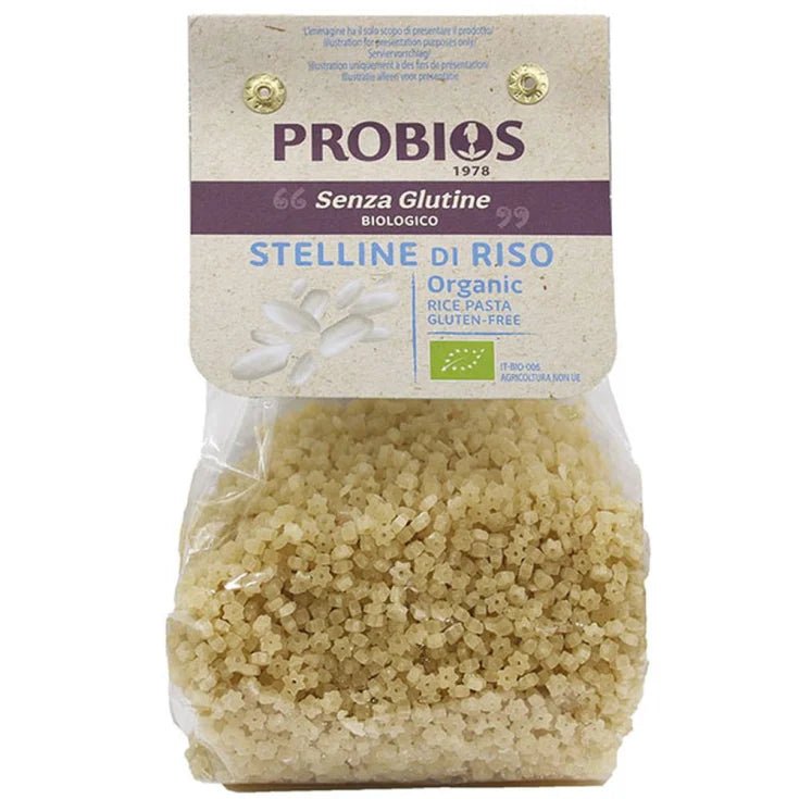Probios Organic Rice Stelline are adorable, 100% organic rice flour mini stars, gluten-free, and perfect for soups or light dishes. They have excellent cooking quality and suit gluten-intolerant people and families alike.