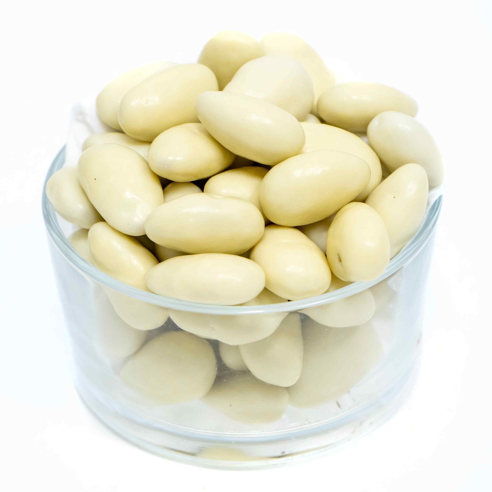 Organic Roasted Almonds Coated in Green Lemon-Flavoured White Chocolate