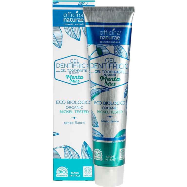 Officina Naturae Organic Zero Waste Natural Mint Gel Toothpaste (75ml) offers a fluoride-free, vegan formula enriched with Icelandic moss, zinc citrate, and organic mint oils. Its eco-friendly packaging includes a recyclable aluminum tube and bioplastic cap, aligning with sustainable oral care practices.